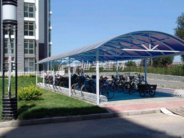 ?車棚的頂部采用遮陽板封頂,同時(shí)與車棚整體骨架采用壓條鉚接的方式,在鉚接部位進(jìn)行防酸堿腐蝕處理,防止日光的直曬。